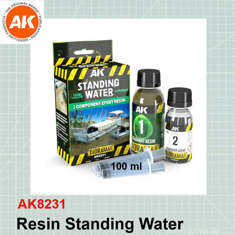This is a two-component colored resin with low odor, intended to simulate standing water in sceneries, dioramas, etc.